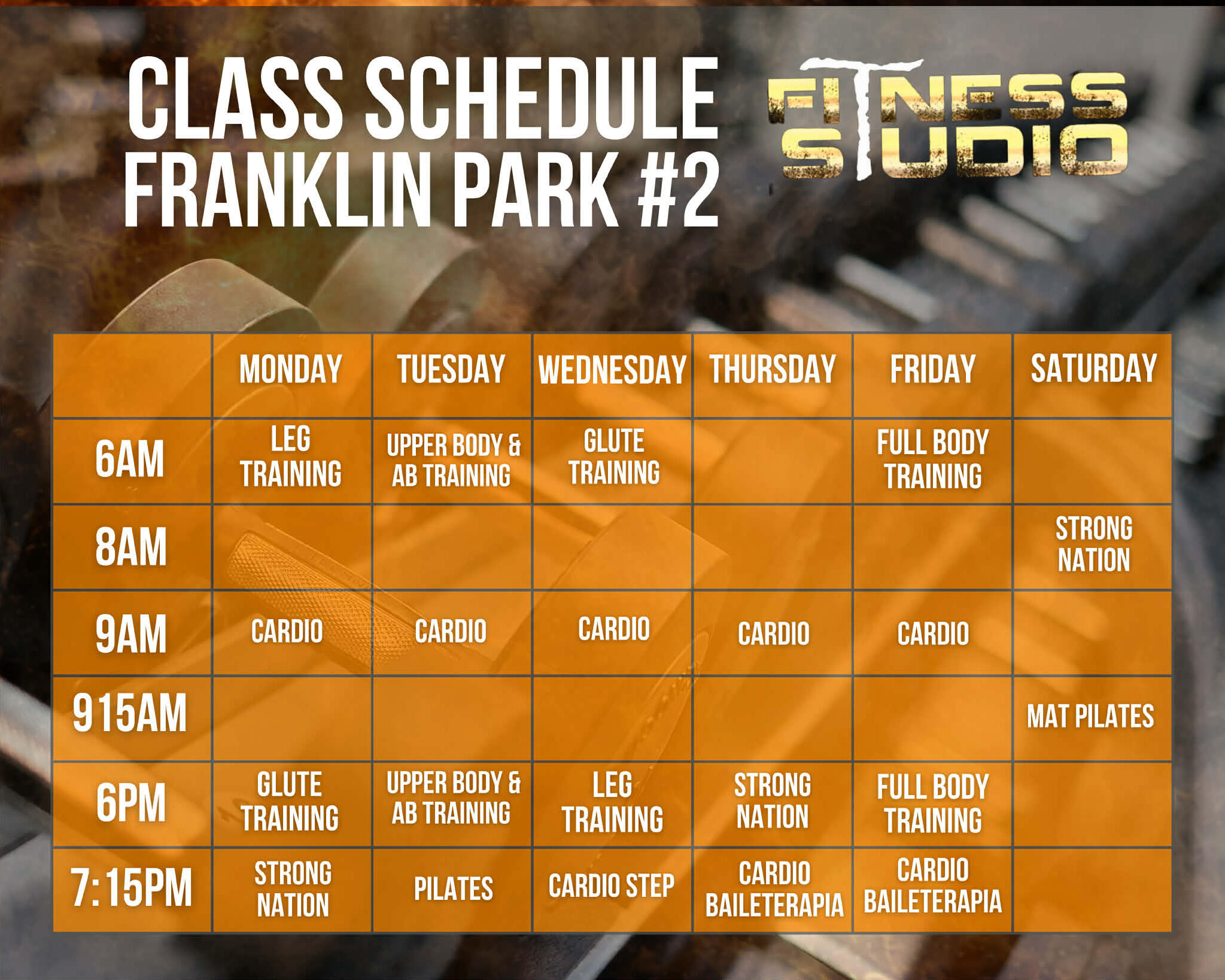 Our weekly class schedules are designed for all fitness levels. Choose your preferred location and time, and enjoy expert-led classes that help you build strength, burn calories, and stay consistent.